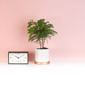 - Selene - This plant comes packaged in a white 6-inch round marbled porcelain planter pot ready for your home or office space with a ceramic rose gold tray to catch drips when watered.