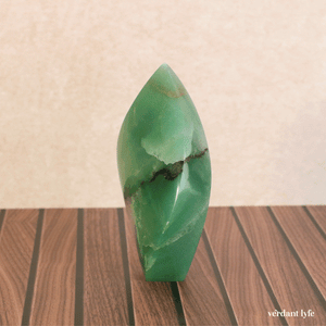 Bring harmony and prosperity into your space with our Green Aventurine Flame from the Feng Shui Lyfe Stones Collection. Each hand-carved crystal is unique, showcasing vibrant green hues that attract luck, abundance, and positive energy—perfect for home décor, meditation, or crystal healing.