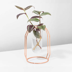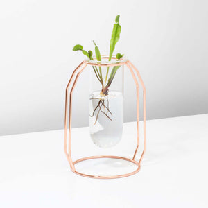 The Lyfe Propagation station is an elegant and sophisticated way to both display your plants and propagate them. A rose gold colored metal frame and a glass test tube can house and hold an assortment of proportions with sufficient water to keep them going for a week as those roots develop. This Propagation can also serve as a bulb vase for a small and short flower arrangement.