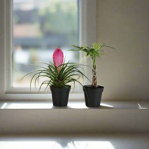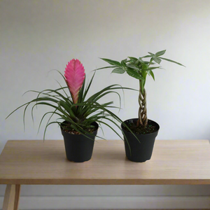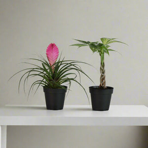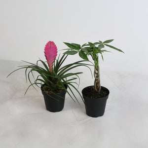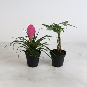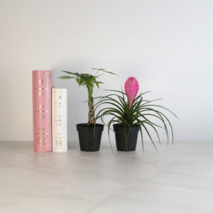 Celebrate our 5-Year Anniversary with this joyful duo! The Lyfe Celebration Bundle features a 4" Pink Quill Air Plant (Tillandsia cyanea) and a 4" Braided Money Tree (Pachira aquatica). This pair was chosen for their easy-care nature, uplifting energy, and timeless beauty—making it the perfect starter bundle for beginners and a delightful addition for plant experts.