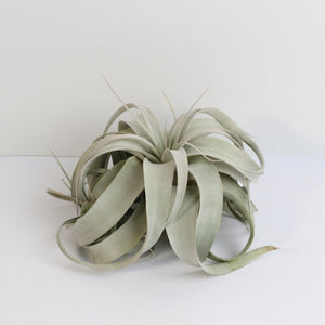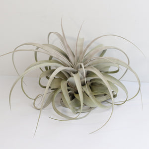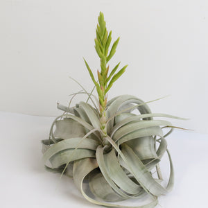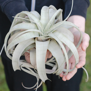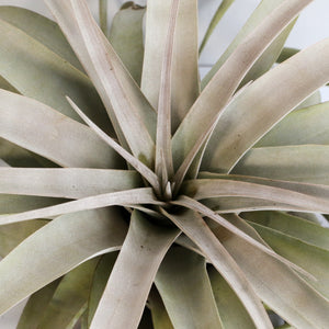 What makes Xerographica stand out is its elegant, sculptural form. Its broad, silver-gray leaves gently curl and twist, creating a rosette shape that's both architectural and mesmerizing. This air plant can grow up to two feet across, making it a stunning focal point in any room.