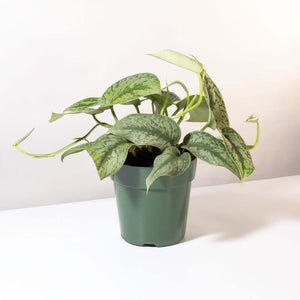 Also known as the Silver Satin Pothos this plant is a great splash of silvery green color to add in your space. The Scindapsus are a beautiful and easy plant that is low maintenance and not picky about its environment. A favorite plant for indoor air purification in an office or home. This one is the Scindapsus 'Silver Satin' which gets gorgeous silver speckled coloring and a surprise with each new leaf, the lighting may change its coloring too. Super easy to propagate and share with friends or grow many of your own from just one plant.
