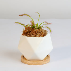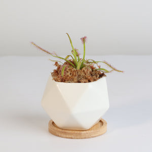 • Diana Planter - This plant comes packaged in a white round porcelain planter pot almost 4" ready for your home or office space with a bamboo tray to catch drips when watered.
