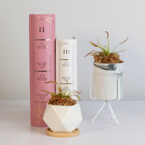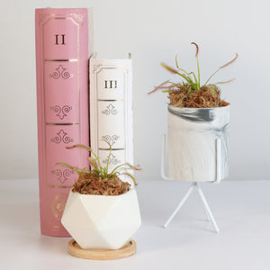 These bog-loving plants do best when kept in a humid environment and only given distilled or rainwater.  If your plant needs added humidity our Plant Mister would make a perfect addition to your plant shelf for both function and beauty.