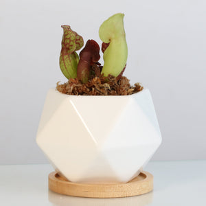 Wanda Ceramic 3": Elegant Hexagonal patterned ceramic planter pot. Includes a bamboo tray.