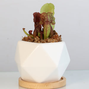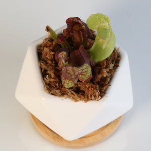 These plants thrive in humid environments and should only be watered with distilled or rainwater. They are sensitive to minerals, fluoride, and chlorine, which can cause yellowing or browning of their leaves. Additionally, avoid using regular soil, as it's too rich in nutrients for them. Instead, we offer Sphagnum Moss, which is the ideal medium for their growth. They prefer bright light. Fluorescent or other cool-temperature grow lights can be used for the indoor cultivation of smaller species. A terrarium of smaller carnivorous plants under such lights can make a great starter set-up.