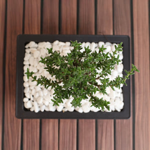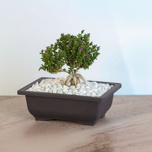 Rectangular decorative container -Comes in decorative Bonsai dish including pebbles. Size 6.5" x 4.7" x 2.35"