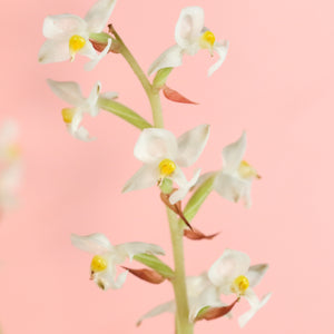 This is an easy indoor plant to care for. A mature Jewel Orchid that is several years old and has received good care will eventually produce multiple growths and spread out. When it's time for the plant to flower, the growths will each produce a flowering spike that grows upwards quickly. Once ready the flower buds will open and show off many little white flowers which certainly create a lasting impression. Keep the plant away from any harsh sunlight that filters through during the day. Comes in a 4” nursery pot. It can handle low light. Water the plant well and then wait until it's drying out before watering again.