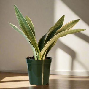 Sayuri Sansevieria, also known as Sayuri Snake Plant features long, slender leaves with silver-gray and green variegation, giving it a striking look. Like other Sansevierias, it's low-maintenance and well-suited for indoor environments due to its ability to thrive in low light and tolerate infrequent watering.