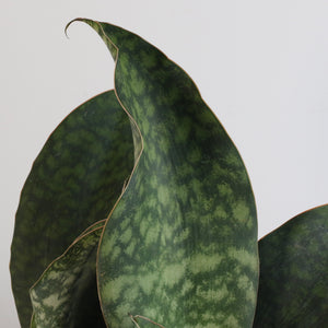 Add a touch of nature to your home with this resilient and stylish plant, and enjoy its bold aesthetics and effortless charm. Whether placed on a desk, shelf, or in a statement pot, the Shark Fin Sansevieria Snake Plant is sure to elevate your décor and bring a sense of calm to your surroundings. Available in the following planter options. Allow the soil to dry out completely between waterings. Watering once every 2-6 weeks is typically sufficient, depending on light and temperature conditions.