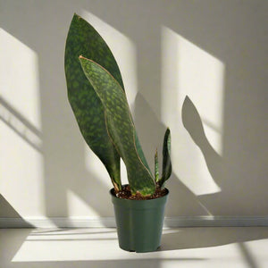Transform your space with the sleek, modern charm of the Shark Fin Sansevieria Snake Plant. Known for its striking, shark fin-shaped leaves, this unique variety of Sansevieria adds a touch of exotic elegance to any room. With its upright, sculptural foliage that emerges from a compact rosette, it's perfect for both contemporary and minimalist interiors. This hardy plant is not only a visual stunner but also incredibly easy to care for. It thrives on neglect, requiring minimal watering and low light conditions, making it an ideal choice for busy lifestyles or low-light environments. The Shark Fin Sansevieria is also an air-purifying powerhouse, helping to improve indoor air quality and creating a healthier living space.
