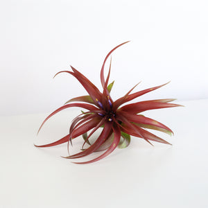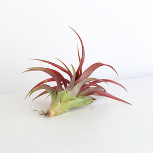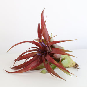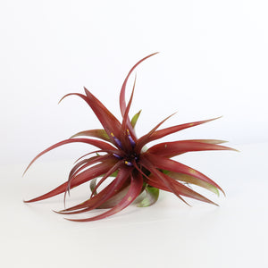 This variety adds a vibrant pop of color to any air plant collection. It begins as a bright lime green and gradually deepens into a stunning red-maroon hue as it approaches bloom.