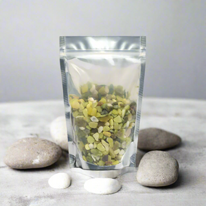 Our bagged rocks are available in green quartz to add underwater vibes to your favorite succulents. The fit any size of terrarium, as they are pebble-sized and come in bags of 1lb.