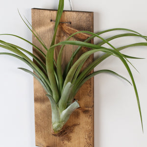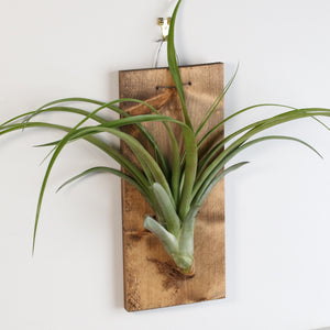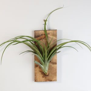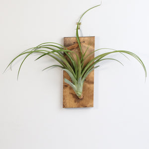 Mounted on a sleek 7" x 12" wall mount, this Tillandsia Ionatha Rubra creates a bold and minimalistic statement in your home or office. The unique wall mount allows this air plant to stand out and be admired from all angles, giving it an elegant, floating appearance that complements any decor style. This bare-root plant requires no soil—just a simple misting especially by the root at least twice a week. These plants are hassle-free, low-maintenance addition to your plant collection.
