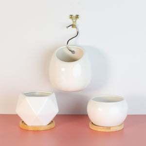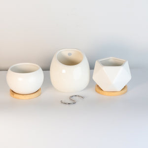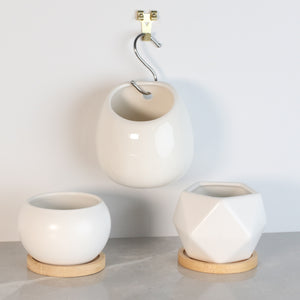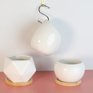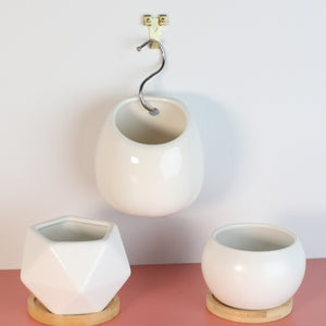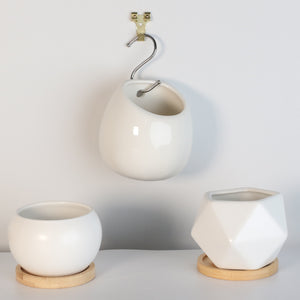 Three of our best-selling minimalist ceramic planters are now available as an easy-to-purchase bundle. If you can't decide which one of these shapes to love, get them all. Each is elegant and stunning on its own, but they look like a great matching set when they are all together.