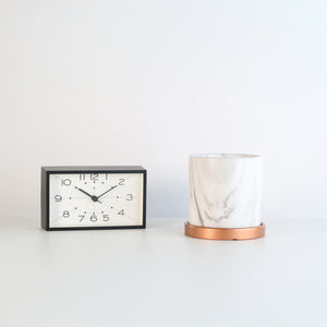 • Daphne Ceramic 4.5" marble planter with drainage hole and matching rose gold ceramic tray. The planter measures: 4.5" x 4.5" x 5" and weighs approximately 1 lbs. We recommend placing your plant in the nursery pot inside it to make it easy to water and transplant.