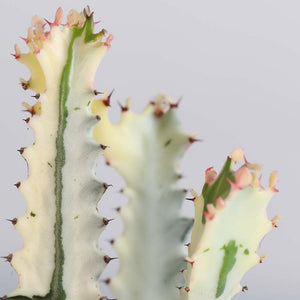 Dragon Bones is an apt nickname for this fascinating-looking plant that is visually striking, the Euphorbia Lactea White Ghost Albo Succulent lacks most of its chlorophyll-making abilities giving it the unique White Ghost Succulent appearance. These a fully rooted and stunners to add to your succulent collection.