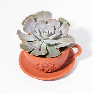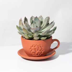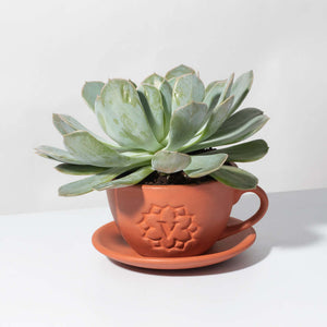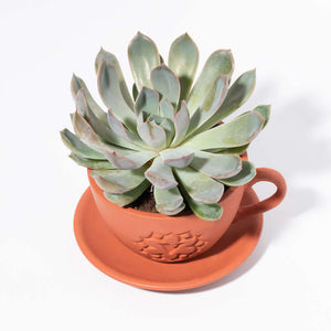 - Lyfe Terracotta Planter 4" - This plant comes packed in our monogrammed teacup terracotta planter with a matching drip tray.