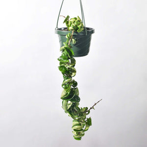 The Hoya carnosa Compacta also known as Krinkle Kurl or Hindu Rope (Indian Rope) plant is certainly a favorite of ours with curly leaves and porcelain flowers once it matures. This is a semi-succulent, perennial, that trails and vines with lush waxy foliage and gorgeous blooms. Needs bright light and drying between watering but will give you amazing growth in hanging pots or elevated shelves. A perfect plant for novice houseplant owners.