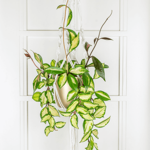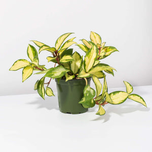 The Hoya carnosa Crimson Princess is a favorite in our pink plant assortment. This is a semi-succulent, perennial, that trails and vines with lush waxy foliage and gorgeous blooms. Needs bright light and drying between watering but will give you amazing growth in hanging pots or elevated shelves. A perfect plant for novice houseplant owners.