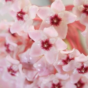The Hoya carnosa Krimson Queen is a favorite in our pink plant assortment. This is a semi-succulent, perennial, that trails and vines with lush waxy foliage and gorgeous blooms. Needs bright light and drying between watering but will give you amazing growth in hanging pots or elevated shelves. A perfect plant for novice houseplant owners. The Krimson Queen is very similar to the Krimson Princess but with the edges around the outside being white, sometimes known as reverse variegation.