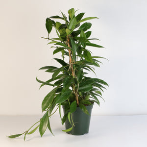 • Hoop Nursery Pot 6" -Approximately 18" tall.  Includes bamboo hoop that allows your plant to trail and vine beautifully.  The Hoya Pubicalyx Hoop in a 6" planter is a stunning vining plant known for its star-shaped, fragrant blooms and glossy, speckled leaves.