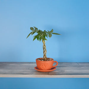 - Lyfe Teacup Planter (approx 5") - This plant comes packed in our monogrammed, glazed terracotta planter with a matching drip tray saucer.