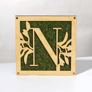 Monogrammed Moss Frame - Wooden Botanical Wall Art Letter "N"