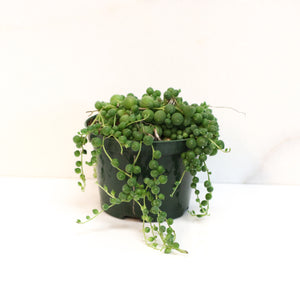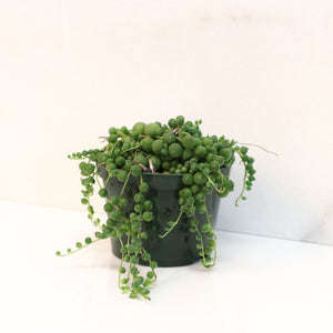 Jackie Kennedy famously said "Pearls are always appropriate." We agree! Our String of Pearls has super healthy green orbs of trailing awesomeness. They reward careful attention and trail beautifully in any hanging planter. This plant is known as senecio rowleyanus and rosary plant.