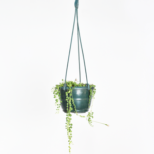 Amelia Porcelain Hanging 4" - The planter made with sealed porcelain. Has a hole at the bottom for drainage and can be put flat on a surface too if that is preferred. Comes with an S hook for easy hanging too.  It includes 3 x 2" String of Pearls.  The customer will need to re-pot the plants inside the Amelia. Extra soil will be provided.